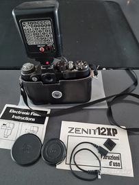 macchina fotografica reflex Zenith. completa di istruzioni. esposimetro elettronico. flash e duplicatore bifocale compreso.