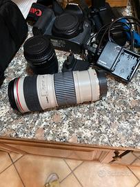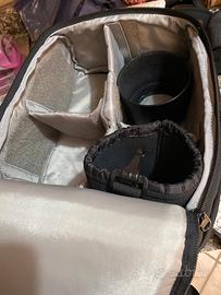 Macchina fotografica con due obbiettivi completa di zaino