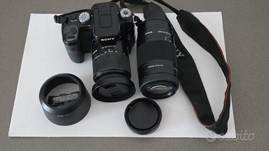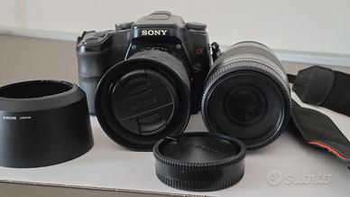 Vendo macchina fotografica Sony Alpha100 anno 2007 corredata di obiettivo standard, teleobiettivo, schedine di memoria e zainetto di custodia.