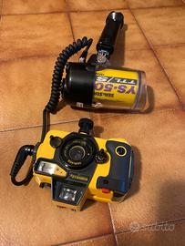Vendo macchina canon a rullino subacquea con suo flash e manico porta macchina
