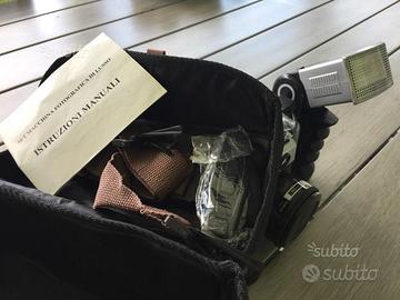 Nuova mai usata. Ricevuta in regalo Funziona con 2 pile stilo a rullino/pellicola Flash orientabile e molto potente!! Borsa ,cintura tracolla,cordino anti scivolo e istruzioni. Compresa spedizione