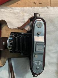 Macchina fotografica Agfa Isolette modello Vario , condizioni come da foto , completa di custodia originale Agfa e di un flash con comando a distanza dell'epoca. ( non Agfa) La macchina fotografica non scatta foto da molti anni ovviamente ma il suo stato e' buono