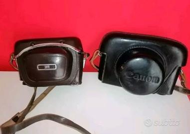 Macchine fotografiche vintage Canon Canonet (1366042) e 3 M/3160. Oggetti usati con inevitabili segni del tempo/d'usura, venduti come "non funzionanti/per parti di ricambio" in quanto impossibilitati ad essere testati. Oggetti privi di scatole originali, istruzioni o altro, presentano le sole custodie in pelle visibili in foto. Euro 20 al pz.