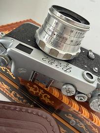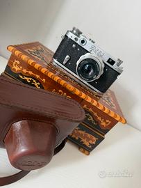 Questa è una fotocamera a telemetro sovietica FED-2 (ФЭД-2) prodotta tra gli anni '50 e '70, spesso considerata un pezzo da collezione per la sua importanza storica nel design delle fotocamere. Monta un obiettivo intercambiabile Industar-26m (\(50mm\text{\ }f/2.8\)). È dotata di un mirino e telemetro separati per la messa a fuoco manuale. Il corpo macchina è in metallo, tipico delle costruzioni sovietiche robuste dell'epoca. Queste fotocamere erano copie meccaniche basate sul design della Leica, rendendole popolari tra gli appassionati di fotografia vintage. Essendo un prodotto vintage Non ne posso garantire il funzionamento Oggetto da collezione