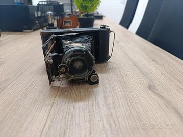 Macchina fotografica a soffietto d’epoca non funzionante, ideale per restauro, ricambi o come oggetto decorativo vintage.