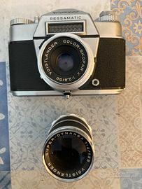 Fantastica macchina fotografica vintage, Reflex Voigtlander Bessamatic prodotta dal 1958 al 1962 in Germania. Fotogramma 24x36 con ottiche intercambiabili. Attacco a baionetta. In aggiunta obiettivo Super Dynarex. Tutto in perfette condizioni, conservato con grande cura da un appassionato della fotografia.