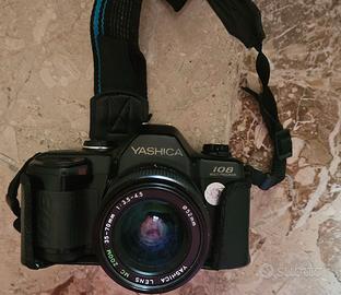Macchina fotografica Yashica 108 multiprogram con ottica zomm 28-80mm reflex 35m. Flash Starblitz 250BAZ, che funziona con 4 pile alcaline non incluse. Con borsa Rowi grigia. Usata pochissimo, ottime condizioni.