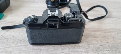 Esposimetro integrato, visibile all’interno del mirino (nel mirino si vede un pó di polvere). Caricamento e riavvolgimento della pellicola manuale.