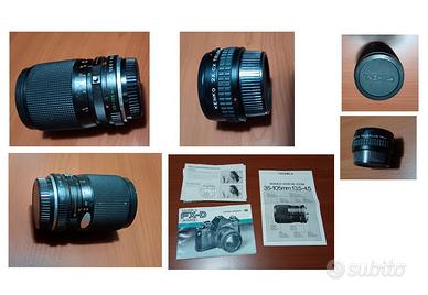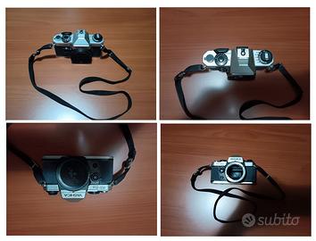 Borsa con macchina fotografica yashica, con obiettivo e releobiettivo.