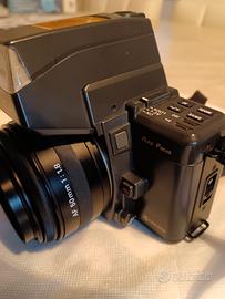 Macchina fotografica reflex autofocus in ottime condizioni, dotata flash dedicato, obiettivo originale 50 mm, libretto di istruzioni, batteria nuova, cinghia tracolla, tappi di protezione corpo macchina e obiettivo. Avanzamento, riavvolgimento, autofocus, selettori, funzionanti.