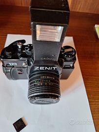Macchina Fotografica Zenit 122 con cinturino originale paraluce Flash comando a distanza