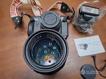 Provvista di custodia e tracolla, obiettivo extra con relativa custodia, supporto stabilizzatore.