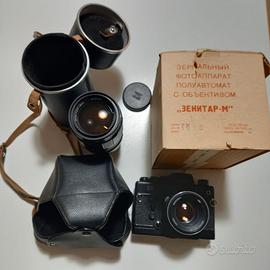 Macchina fotografica Zenit 19 originale russa fine anni ’80; completa di obiettivo 50mm e custodia; in ottime condizioni e poco usata. Obiettivo Jupiter 21m originale russo, fine anni ’80, con custodia, in ottime condizioni.
