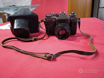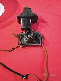 Macchina Fotografica Zenit et Vintage 3EHNT compresa di custodia in pelle con tracolla e flash