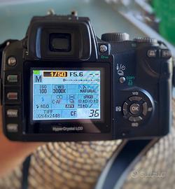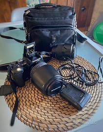 macchina fotografica usata, in ottime condizioni con 2 obiettivi, caricabatterie e custodia. Cinghia originale, tappi protettivi per gli obiettivi.