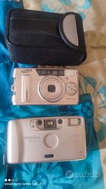 La Samusung è dotata di Autofocus, macro, sensore occhi rossi, flash incorporato diverse funzioni. La traveler AF, idem con funzione macro, autofocus, flash automatico temporizzato e zoom automatico. entrambe in buono stato, non trovo la Custodia della Samsung, l'altra è della Travler, ottimo stato.