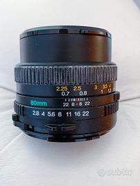 Macchina fotografico medio formato Mamiya 645 con obiettivo 50mm + obiettivo 80mm + magazzino rulli 120+magazzino rulli 220