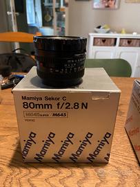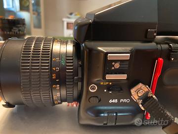 Near Mint Mamiya 645 PRO + AE prism + 45mm f2.8. +3 magazzini,magazzino 135,oculare,pozzetto,motore riavvolgimento 80 sekor C +150 Sekor C