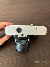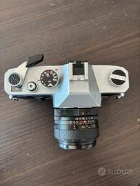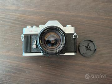 Vendo splendida fotocamera reflex 35mm Mamiya DSX 1000, un classico della meccanica giapponese. La macchina è dotata del rarissimo sistema di doppia esposizione (Spot/Average). Inclusa ottica grandangolare Skymaster 28mm f/2.8 con attacco a vite M42, lenti pulite e ghiere fluide. • Otturatore meccanico (funziona senza pile) fino a 1/1000s. • Attacco M42 compatibile con centinaia di ottiche vintage. • Condizioni estetiche ottime, segni d'uso minimi. Ideale per studenti di fotografia o appassionati di analogico.