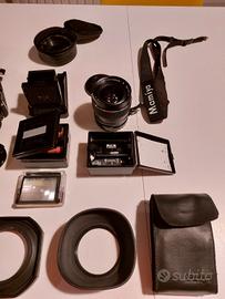 Il kit è estremamente ricco e permette di configurare la macchina in modalità "Studio" (motorizzata con impugnatura) o "Light" (manuale con mirino a pozzetto).