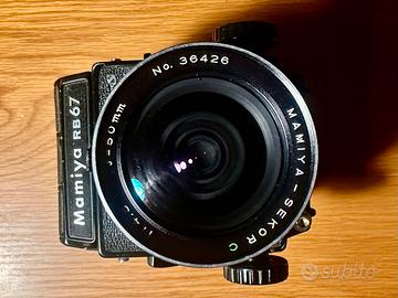 Mamiya rb67 pro s Buone condizioni estetiche Con ottica Nb 90mm 1:3,8 Ottica c 50mm 1:45 Paraluce collassabili in gomma Cavo di scatto Dorso 120 Dorso polaroid E borsa rigida di trasporto dedicata