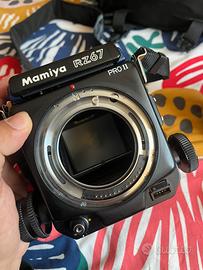 Mamiya RZ67 + Sekor Z 65mm f/4 Vendo sistema medio formato Mamiya RZ67 completo di ottica Sekor Z 65mm f/4, ideale per fotografia di ritratto ambientato, moda e still life. Le guarnizioni interne sono state sostituite un paio di anni fa. Il corpo macchina è in buone condizioni generali e perfettamente funzionante, pronta a scattare!