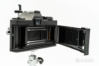 MAMIYA ZE -1980 Giappone. Fotocamera reflex per pellicola 35mm,fotogramma 24x36mm. Ottica intercambiabile con baionetta. Otturatore con tendine metalliche a scorrimento verticale a controllo elettronico,tempi di scatto da Scala ISO da 12 a 3.200.