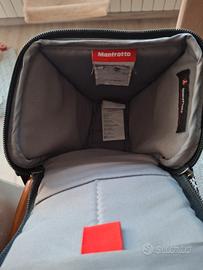 Vendo fondina Manfrotto per reflex misura media. Colore nero, materiale morbido. Tracolla removibile, maniglia di trasporto, tasche laterali. Dotata di copertura antipioggia. Dimensioni 12,5 x 15,5 x 23