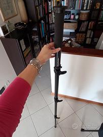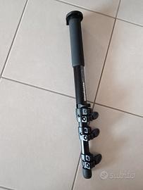 Monopiede a tre sezioni dotato di impugnatura morbida antiscivolo, sistema di bloccaggio rapido a leva, ampia base piatta per testa o fotocamera rivestita in materiale plastico e vite di fissaggio.