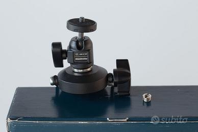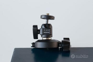 Staffa di supporto per monopiede Manfrotto mod. 331, completa con la mini testa a sfera 482 con vite da 1/4" e adattatore da 3/8" - trasforma il monopiede in un mini cavalletto; nuova, mai usata, in condizioni perfette, con la scatola originale.