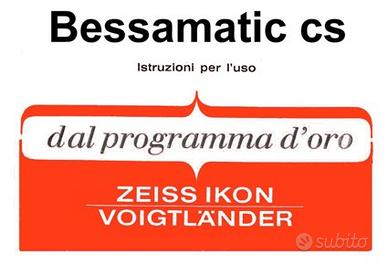 Libretti Istruzioni per Fotocamere d'epoca Contax-Voigtlander - Zeiss-Contaflex-Contarex Cartacei Italiano ---------------------- LIBRETTI PER FOTOCAMERE CONTAX (Contax IIA) (Contax IIA Color Dial) (Contax IIIA) (Aria) (AX) (G1) (G2) (137 MD) (139 Q) (159 MM) (167 MT) (645) (N-1) (NX) (RTS) (RTS II) (RTS III) (RX) (S2) (ST) (T2) (TVS) ------------------------- LIBRETTI PER FLASH CONTAX (TLA-20) (TLA-140) (TLA-200) (TLA-280) (TLA-360) -------------------------- LIBRETTI PER MOTOR DRIVE CONTAX (Winder W-7 per Contax 159 MM) --------------------------------------------------- LIBRETTI FOTOCAMERE VOIGTLANDER (Bessa L + R2 + R2A + R3A + T) (Bessa 2) ( Bessa 6x9 - 4,5x6 Anni 30) (Bessamatic 24x36) (Bessamatic CS) (Bessamatic CSR) (Bessy AK) (Bessy K) (Bessy AS) (Bessy S) (VF-35 F) (VF 101) (VF 135) (VSL 2) (VSL 3E) (Vitessa) (Vito 2) (Vito C) (Vito CL) (Vito CLR) (Proximeter) (Vitoret 24x36) (Vitoret DR) (Vitoret L) --------------------- LIBRETTI WINDER VOIGTLANDER (Autowinder E) - (Trigger Winder) ======================= LIBRETTI FOTOCAMERE ZEISS IKON (Contaflex Super) (Contarex) (Contarex Tabelle Obiettivi) (Cyclope) (Super) (Super Electronic) (Contessamat SBE) (Contina II) (Contina 24x36) (Icarex 35) (Icarex 35s) (Ikonta II) (Nettar II 6x6) (Nettar 6x9) (Rangefinder) (Super Ikonta II) (SW) _______________ LIBRETTI ACCESSORI ZEISS IKON (Magazzino Contarex/Contaflex)