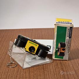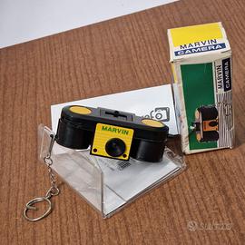 Marvin Camera Mini Vintage – La Fotocamera Portachiavi da Collezione Un piccolo gioiello della fotografia "Pocket" degli anni '70! Cerchi un pezzo unico per la tua collezione o un regalo indimenticabile per un amante del vintage? Questa Marvin Camera è tanto piccola quanto affascinante. Progettata per essere portata sempre con sé grazie alla catenella portachiavi, rappresenta perfettamente l'era delle mini-fotocamere di Hong Kong. Caratteristiche principali: • Design Iconico: Forma a binocolo stilizzato con colori vivaci (nero, giallo e verde). • Formato Pellicola: Funziona con cartucce formato 110 (Instamatic 110). • Ultra-Compatta: Sta letteralmente nel palmo di una mano. • Completa di Box: Rarissima da trovare ancora con la sua scatola originale illustrata dell'epoca. • Made in Hong Kong: Un classico esempio di produzione di massa creativa del periodo vintage. Perché acquistarla: • È un pezzo di storia della fotografia "toy" e "gadget". • Perfetta da appendere a una borsa fotografica come accessorio di stile. • Un oggetto di design pop che attira subito l'attenzione in ogni bacheca.