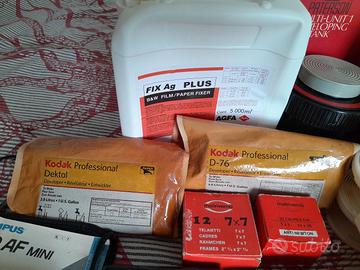 macchine fotografiche non testate, vendesi come non funzionanti. Per camera oscura: vaschette, timer, sviluppo, fissaggio, lampadine ingranditore, tank sviluppo, imbuti, pinzette...tutto da testare