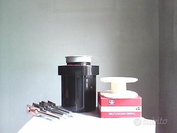 Materiale per camera oscura; ingranditore per film 35 mm e 6 x 6 cm; vaschette di sviluppo; sviluppatore film; condizioni ottime.