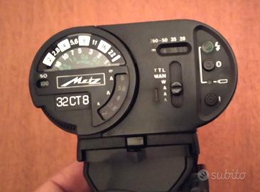 METZ 32 CT 8 flash elettronico per macchine analogiche ,testa basculante,impugnatura per pile e staffa pro cavetto syncro,come nuovo,no usura,con garanzia orig.Ita etc.