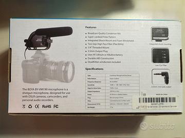 Microfono alta qualità BOYA BY-VM190 stereo a condensatore. Compatibile con tutte le fotocamere e videocamere. Vendo per inutilizzo.