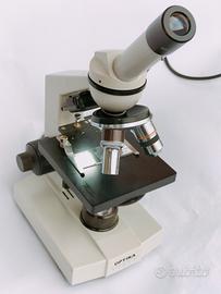 vendo microscopio optika per osservazioni biologiche, a luce polarizzata per tricologia ,studio amianto, per osservazione minerali e metalli. il microscopio è dotato di tre obiettivi 5, 40, 100 IMM olio euromex nuovo. con ottica in perfette condizioni. illuminazione diretta ed in Episcopia ( dall'alto) con illuminatore nuovo ricaricabile con carica batterie di cellulari. le foto mostrano cristalli di zucchero in luce polarizzata,fibre di amianto in lastra di eternit,in luce polarizzata , stelline di un centesimo in luce Episcopia dall'alto , uovo di parassita su capello umano in luce polarizzata, globuli rossi e bianchi di sangue umano in luce passante. È possibile provarlo in video vhottsupp.in fase di acquisto . tel. tre tre nove tre sette quattro due nove nove uno grazie.