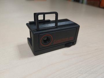 Mini macchina fotografica vintage a colori, mai usata, con ancora la custodia e le istruzioni dell'epoca.