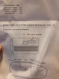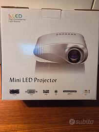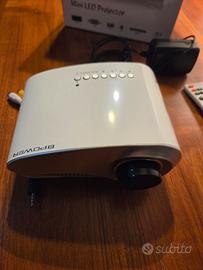 Mini proiettore a led, come nuovo, piccolo con tante uscite, porta a infrarossi, hdmi, usb, vga, av, possibilità di leggere Sd card.
