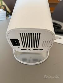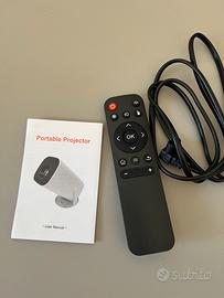 Mini proiettore portatile, ideale per creare un'esperienza cinematografica ovunque. - Design compatto e leggero. - Include telecomando e cavo di alimentazione.