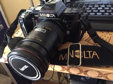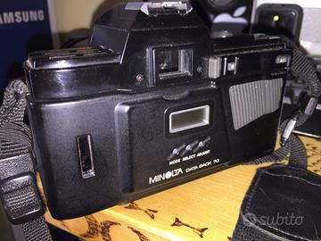 Corpo macchina Minolta 7000 autofocus, riavvolgi pellicola motorizzato, funzionante. Plastica del comparto batteria logorato dal tempo ma acquistabile in rete e sostituibile.