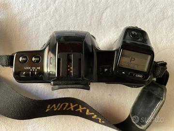 Macchina reflex Minolta Dinax (Maxxum per mercato americano) 7000i solo corpo macchina + Minolta Program Flash 3200i. Il corpo macchina è in ottime condizioni meccaniche, ma l'impugnatura presenta invece delle crepe estetiche che però non impediscono il corretto utilizzo della macchina. Minolta Program Flash 3200i perfettamente funzionante.