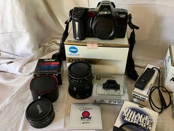 Minolta Dinax7000i con accessori come da foto. Il tutto in ottime condizioni. Imballi originali. No spedizione. Visto e piaciuto. Pagamento e consegna brevi mani.
