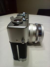Vendo fotocamera Milta Hi Matic 11 dotata di obiettivo Rokkor PF 45 mm f1,7 in eccellenti condizioni. La fotocamera impercettibili segni d'uso (nonostante i suoi oltre 60anni...), il portabatteria è sano e funzionale (vedi foto), Tutto è perfettamente funzionante, avanzamento, contapose, tempi di scatto, diaframma pulito. L'obiettivo, un 6 lenti in cinque gruppi famoso per la sua qualità, è privo di urti, graffi o muffe. Messa fuoco fluida, regolare, esposimetro ottimo. Telemetro allineato e patch ben visibile, mirino perfetto. La macchina è stata manutenuta e pulita (CLA) un paio di mesi fa ed aggiornata per l'uso di batterie a 1,5volt (consiglio le ossido d'argento). Importazione ufficiale italiana Onceas. La Minolta HiMatic 11 è stata costruita nel periodo top delle macchine telemetro ad ottica fissa e della Minolta stessa, automatica a priorità di tempi o con controllo manuale completo, funzionante anche senza batteria (a parte l'esposimetro, ovviamente).