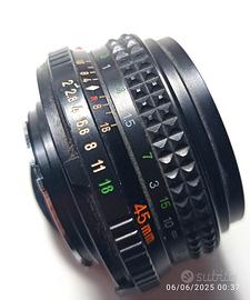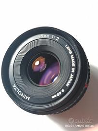 Minolta MD ROKKOR 45 f 2,0 45/2,0 'pancake' obiettivo di ottima costruzione e qualità, ingombro ridotto e adatto anche all'impiego su tutte le moderne Digitali DSLR e Mirrorless (con appositi adattatori)