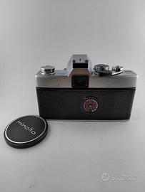Bella Minolta Srt 100 con obiettivo Minolta Pf 58/1.4, funzionante (senza batteria per esposimetro, facilmente reperibile) e in ottimo stato estetico.