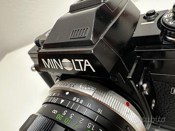 Minolta X-700 – Prima versione (condensatori STEC affidabili) con obbiettivo Minolta MC W.Rokkor-SG 28mm f/3.5