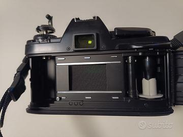 Solo corpo, perfettamente funzionante e testata con rullino. Io buone condizioni estetiche tranne che per il grip sinistro che ha qualche piccola crepa nella plastica. Attenzione inserire le batterie prima di provarla altrimenti la leva di carica sembra inceppata.