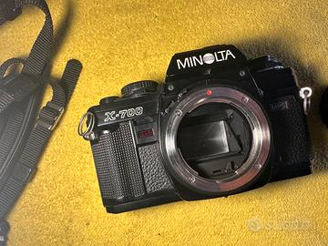 Reflex Minolta X700 completa di cinghia, zoom 28-85. Tutto perfettamente funzionante. Obiettivo come Nuovo senza segni, lenti prive di funghi o graffi, ghiere fluide.