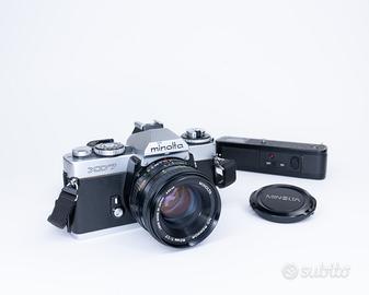 [Near MINT!] Minolta XD7 Silver Body (original shoulder strap) + Minolta MD ROKKOR 50mm f/1.7 + Minolta Auto Winder D + Hanimex MC 75-200mm f/4.5 MACRO Fotocamera in condizioni eccellenti. Prisma limpido, niente corrosione. Tutti i tempi di scatto sono perfettamente funzionanti; testata con pellicola. Esposimetro regolarmente funzionante (con batterie normali). AUTO mode: imposta correttamente i tempi di scatto in base al diaframma. Disponibile anche la modalità Manuale. - il Rokkor 50mm 1.7 è una bella lente molto luminosa. Lente perfettamente pulita, niente funghi/foschia o altro. Il 70-200 Hanimex è uno zoom Macro onesto, in ottime condizioni. Il motore Minolta Winder funziona, è molto compatto e il vano batterie è pulito. *per ulteriori info o fotografie scrivetemi*